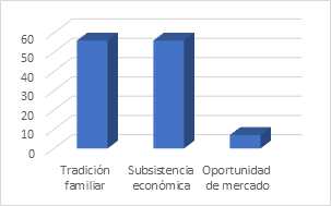Según lo expresado, los artesanos iniciaron sus emprendimientos por tradición familiar y subsistencia económica, más que por una oportunidad de mercado. Indicando que la necesidad de sobrevivencia económica es la causa fundamental para dedicarse a la labor artesanal en muchos grupos familiares de la localidad.