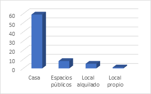 En el caso de los artesanos que venden de forma local sus productos, las transacciones comerciales se realizan principalmente en sus casas de habitación, ocasionalmente en espacios públicos, el uso de locales de alquiler es bajo principalmente por su alto costo y tan solo un artesano ha acondicionado un local específico para su negocio.