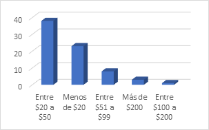 El promedio semanal de ventas se basa en que adquieren una carga (como los artesanos le llaman) de materia prima a un costo de $12.00 la cual puede ser solo una o varias a la semana, dependiendo de la capacidad financiera del artesano o artesana por lo que sus ventas son pocas y de subsistencia, resultando que la mayoría vende entre $20 a $50 semanalmente, otro segmento importante reporta ventas menores a $20 y muy pocos expresan que sus ventas ascienden a más de $51 en adelante.
