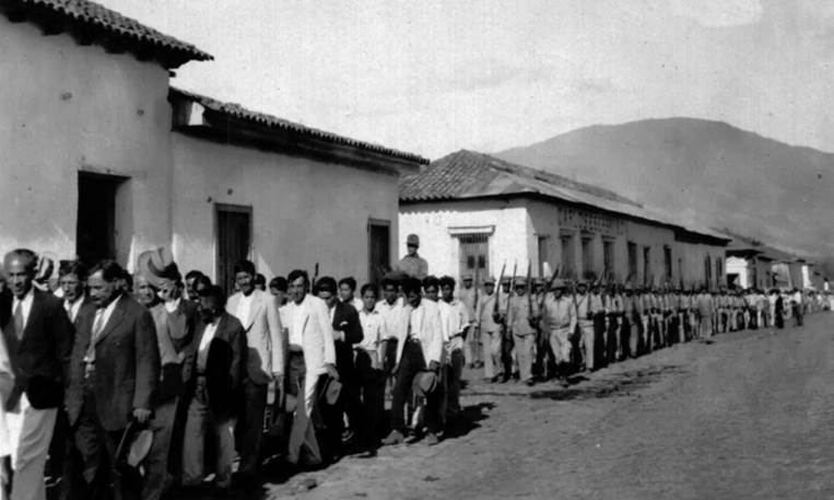 Figura 9: Hombres siendo reclutados en las Guardias Cívicas.