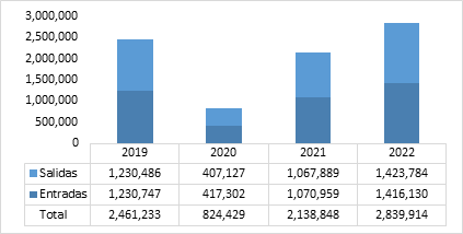 En tercer lugar, otro impulso clave a la economía y el desarrollo tiene a su base el comportamiento del turismo. Como indicador de ello, se presentaron cifras del ingreso y salidas registradas en el Aeropuerto Internacional. En 2022, se registraron más de 2.8 millones de personas que ingresaron y salieron al país por medio del Aeropuerto Internacional. La inversión en la infraestructura Aeroportuaria contribuye a facilitar el turismo, la generación de ingresos y empleo, así como fortalece la economía local, impactando en el bienestar de la población, también incidiendo en el Desarrollo.